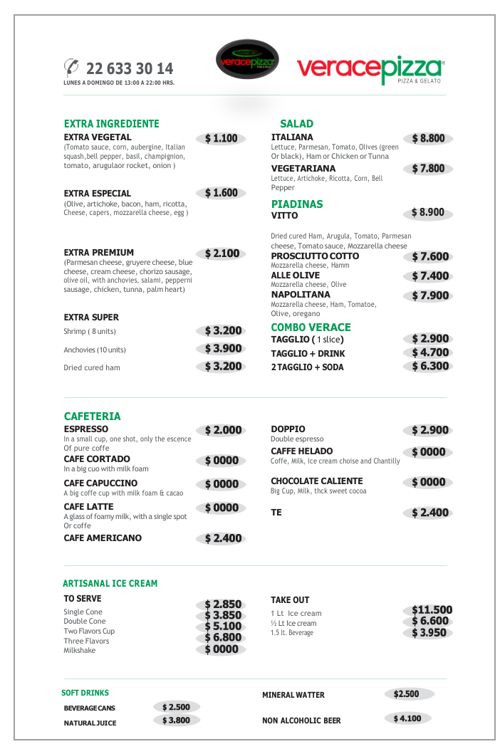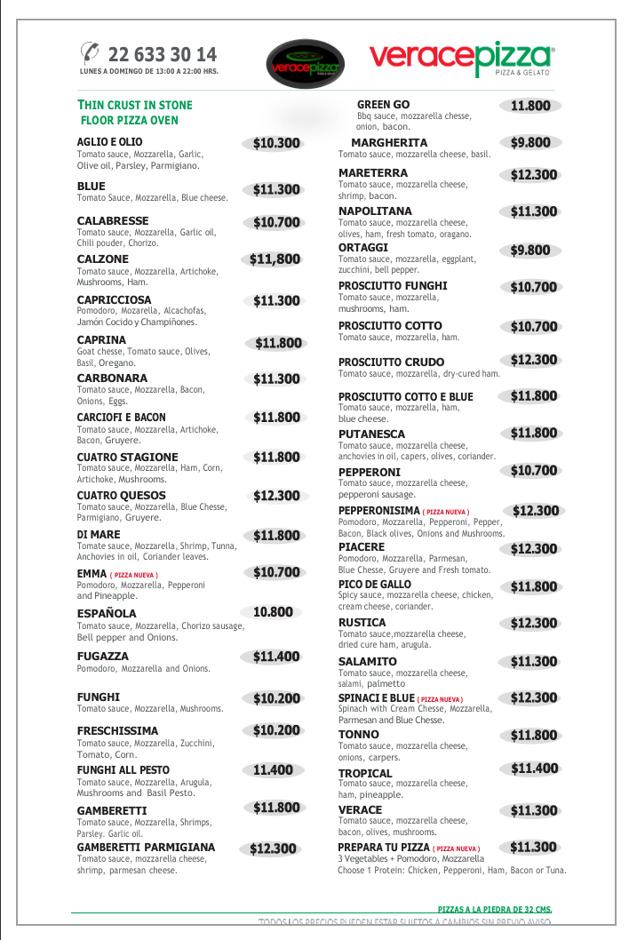 Desde el año 2006 en VERACE estamos en la constante búsqueda de los mejores ingredientes para crear las mejores pizzas a la piedra con nuestra masa artesanal, delgada y crocante , elaborada diariamente en nuestro local, para obtener una auténtica y tradicional pizza italiana.